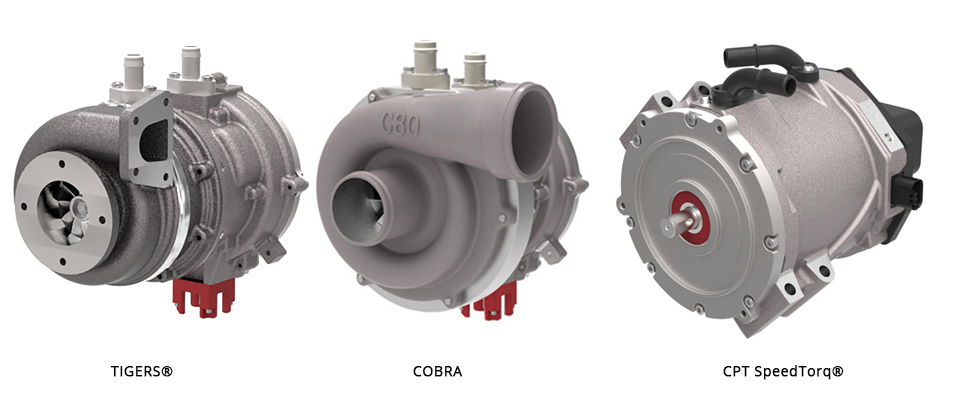 Ключовими рішеннями в області електрифікації системи подачі повітря є системи TIGERS® (інтегрована в турбонагнітач система рекуперації енергії вихлопних газів) і COBRA (система контрольованого наддуву для збільшення чутливості). До складу системи TIGERS входить турбіна, що приводиться вихлопними газами, і генератор з регульованим магнітним опором (SR) з рідинним охолодженням, які представляють собою перевірену та ефективну систему, здатну ефективно перетворювати енергію вихлопних газів в електрику. COBRA — це електричні нагнітачі з рідинним охолодженням, що забезпечують подачу в двигун повітря «на вимогу» і здатні впоратися з більшістю складних робочих циклів і циклів руху завдяки малоінерційному ротору та прекрасній системі терморегуляції. Крім цього, розроблена компанією технологія чутливого мотор-генератора CPT SpeedTorq® дозволяє реалізувати модульний підхід, що дає змогу підібрати ідеальне рішення для конкретних параметрів маси та сфери застосування автомобіля.