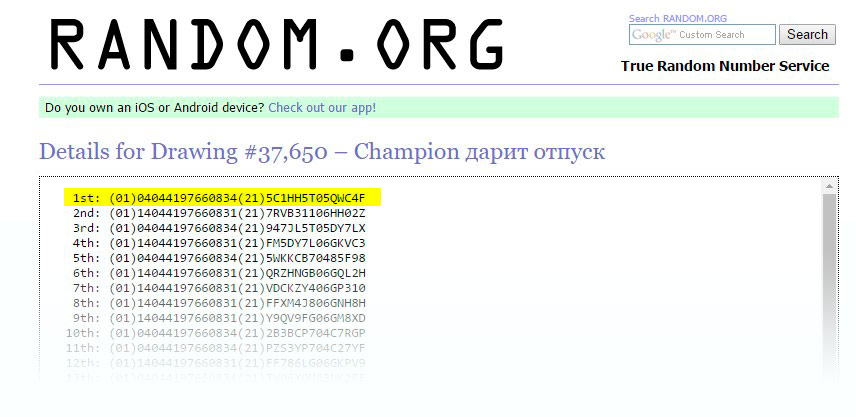 Головний приз акції переможцю приніс код (01)04044197660834(21)5C1HH5T05QWC4F. Руслан, (+38*****2568) поздоровляємо!